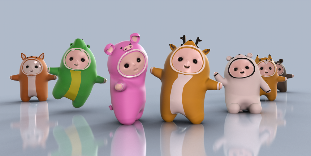 Kids in Animal costume Pack 3d model in cartoon style.